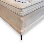 Boxspringbett, Doppelbett 180x200, Luxus Bett, Stoff hellbeige, Visco Topper, Taschenfederkernmatratze, ergonomisches Schlafsystem, Designerbett modern, Metallfüße schwarz, Betten Outlet