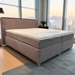 Boxspringbett, Bett 180x200, Stoff braun, Kaltschaum-Topper, Taschenfederkernbett, festes Liegegefühl, modernes Kopfteil, hochwertiges Doppelbett, Betten Outlet