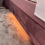Das Boxspringbett Tiara vereint luxuriöses Design mit innovativem Komfort. Der elegante Stoff in Samtoptik Mauve verleiht dem Bett eine edle Ausstrahlung, während die motorische Verstellung für maximalen Liegekomfort sorgt.