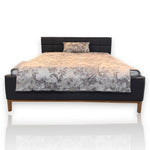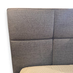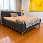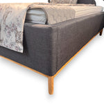 Polsterbett, Bett ohne Matratze, Bettrahmen anthrazit, Kopfteil versteppt, Holzfüße eichefarben, schlichtes Bett, modernes Bettgestell, Doppelbett 180x200, Betten Outlet, besser schlafen, Schlafzimmer minimalistisch, Bett kaufen