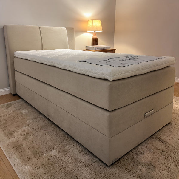 Boxspringbett Pia mit Stauraum – Kompakt, stilvoll & funktional Das Boxspringbett Pia mit Stauraum kombiniert elegantes Design in Beige mit praktischer Funktionalität. Das Kopfteil mit Biese und Überstand sorgt für...