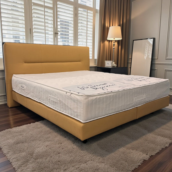 Das Boxspringbett Hörste kombiniert elegantes Design mit hochwertigem Komfort. Durch die pflegeleichte Echtleder-Oberfläche in Sand wirkt das Bett modern, freundlich und luxuriös. Ausstattung & Highlights pflegeleichtes Echtleder in Sand Kopfteil Linie,...